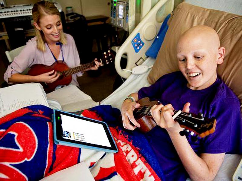 She ended up taking it home, and every time she came into the hospital for repetitive treatments, she would show him her progress in learning how to play the ukulele.