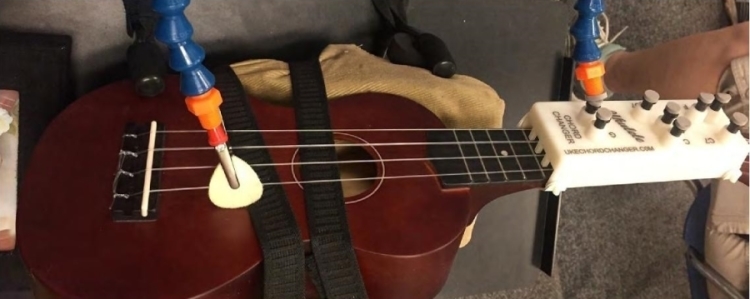 A lot of beginning ukulele players will complain about their fingers being too fat or too short to learn to play the ukulele. But, for some people the challenge is much greater—not having fingers or arms. To help people with upper arm disabilities such as these, Deb Guarneiri, a ukulele player from Upstate New York invented the Ukulele Support System. This pioneering effort to make music more accessible is a collection of accessories Guarneiri adapts to each player’s needs.