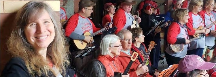 June Pinkham is now on the advisory board of UKC with the specific role of helping other ukulele groups organize fundraisers of their own. “My sweet spot is telling other uke groups across the nation what we do, what works for us, and helping them make their fundraising events a success.” No kidding!