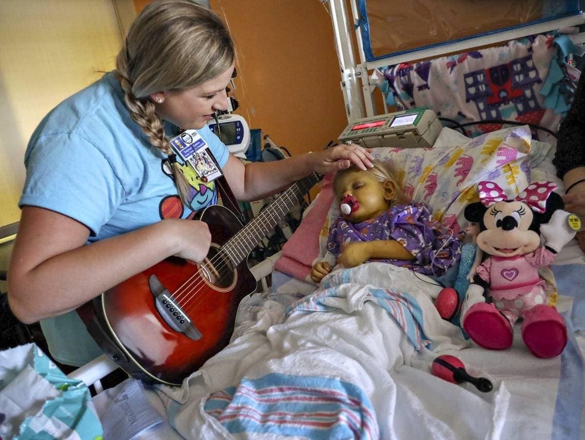 “I’ve seen other music therapists at other hospitals,” said Foley, who traveled from Tampa in an ambulance with her daughter seeking treatment at Holtz. “I’ll just say she sets a very high bar.”