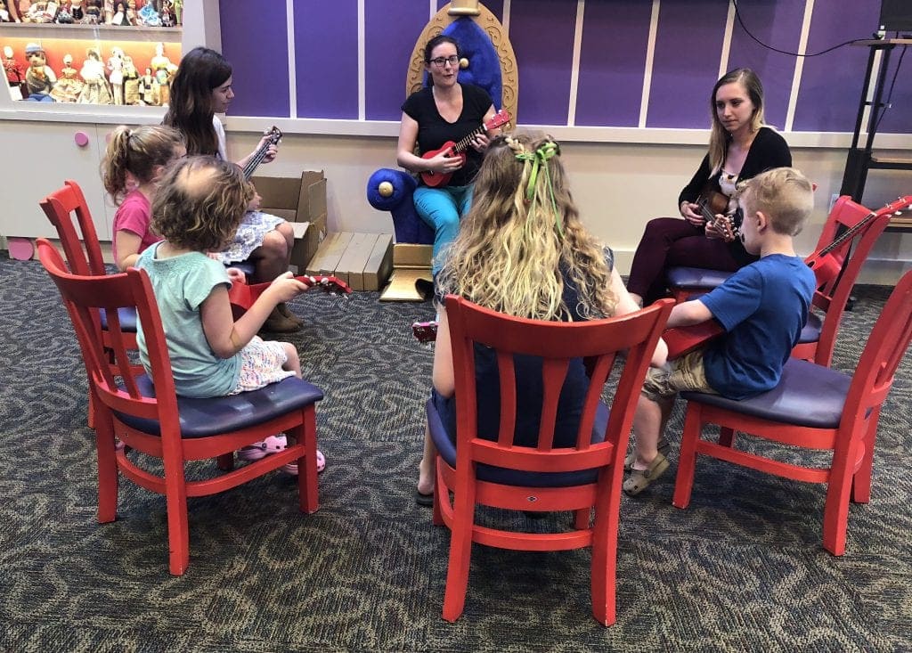 After a little more time, I picked up on the melodies of the Village itself; the sounds of the Enchanted Carousel turning, the trickling of the fountains and Splash Pad, the sound of kiddos laughing as they ran down the Avenue. This place is full of music and magic, and recently, it’s become even fuller thanks to our special friends from The Ukulele Kids Club.